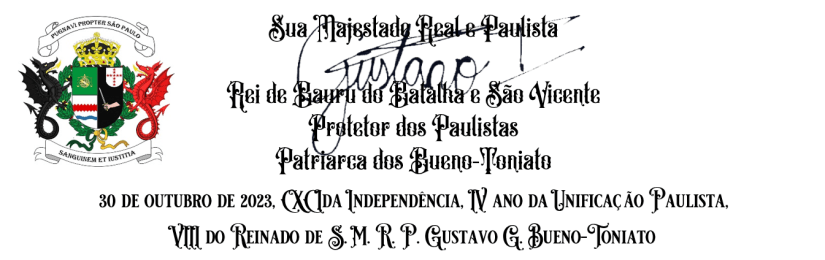 Sua Majestade Real e Paulista, nos usos de suas atribuições constitucionais, faz saber que o Conselho Supremo decretou e ele sanciona a seguinte Lei: