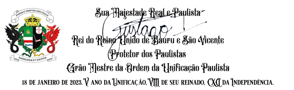 Sua Majestade Real e Paulista, na condição de Monarca do Reino Unido de Bauru e São Vicente e de Patriarca da família Bueno vem por meio desta nota declarar seu apoio total a nossa Augusta Irmã, Marina I, Rainha do Manso, no caso de captura de sua propriedade intelectual, o Símbolo e nome da Ordem Franciscana Secular Micronacional, pela Igreja Micro-Episcopal Católica de Alcântara.