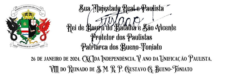 Sua Majestade Real e Paulista, no uso de seus poderes constitucionais, decreta: