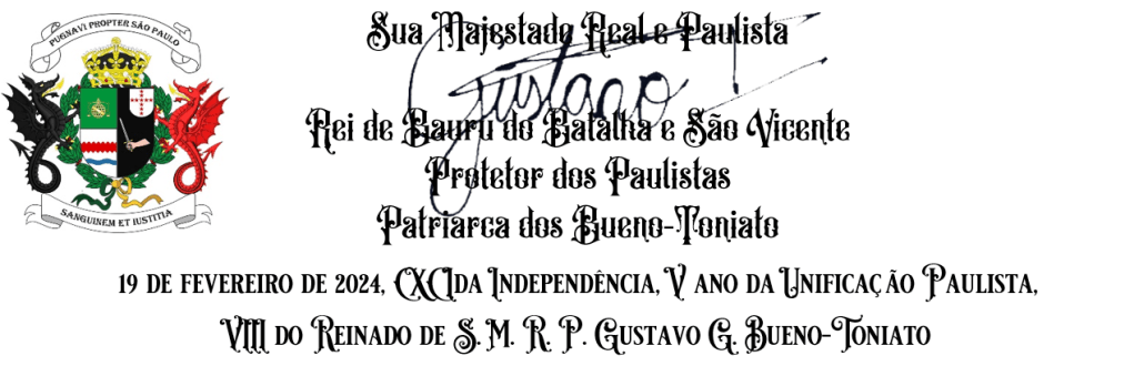 Sua Majestade Real e Paulista, no uso de seus poderes constitucionais, ouvido o conselho supremo do Reino Unido, as diretorias dos partidos nacionais, a fim de dar funcionamento aos artigos 42, 43 e 44 da Comunidade Atlântica decreta: