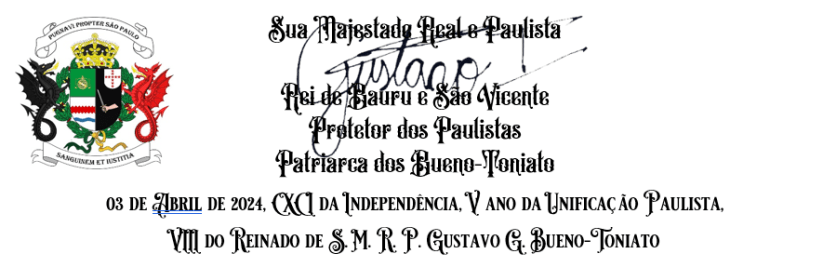 Sua Majestade Real e Paulista, Protetor dos Paulistas, e representante máximo da nacionalidade paulista, de forma a garantir uma organização mais eficiente do Reino Unido decreta: