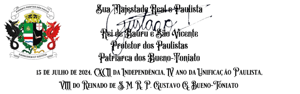 Sua Majestade Real e Paulista, Protetor dos Paulistas, e representante máximo da nacionalidade paulista, decreta: