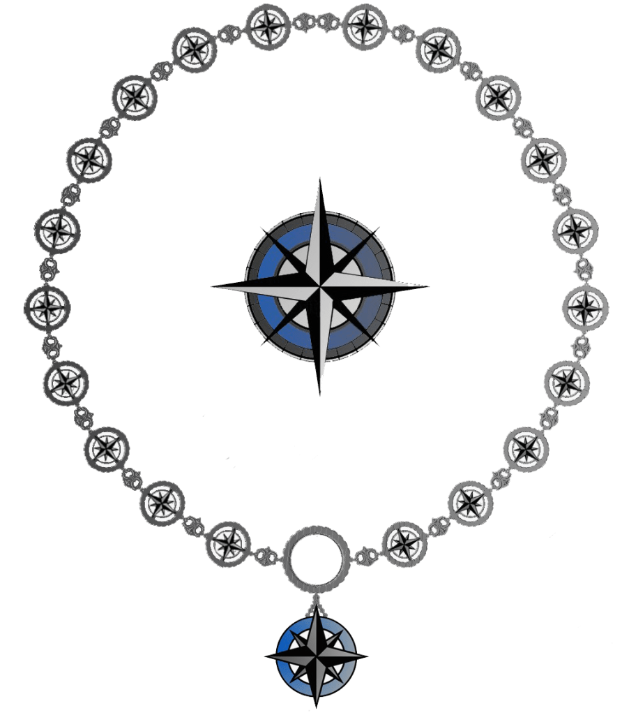 I. Grão Prior: Insignia semelhante a de cavaleiro, pendente de um colar cujos anéis são compostos de várias rosas dos ventos, entrecortadas por pares de elos. Acompanhada da placa de Prior, sempre usada ao lado esquerdo do peito.