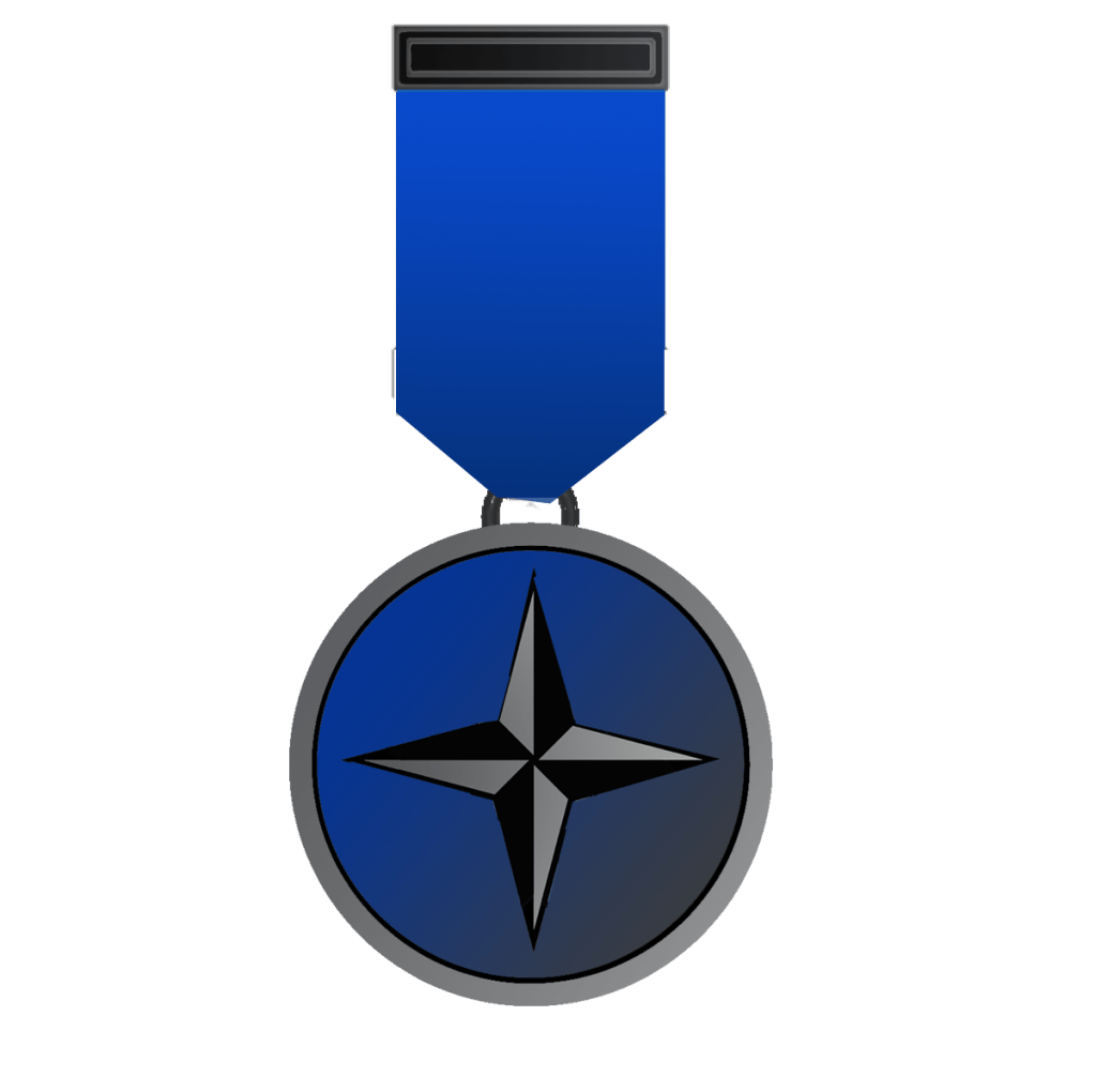 IV. Cavaleiro: Insígnia composta por uma rosa dos ventos de 8 pontas de prata, cujas pontas estão parcialmente esmaltadas de preto sobre prata. A rosa dos ventos está sobre um circulo vazado, de esmalte azul. A insígnia pende de uma faixa estreita, de cor azul, com duas barretas de metal. Usada do lado direito do peito.